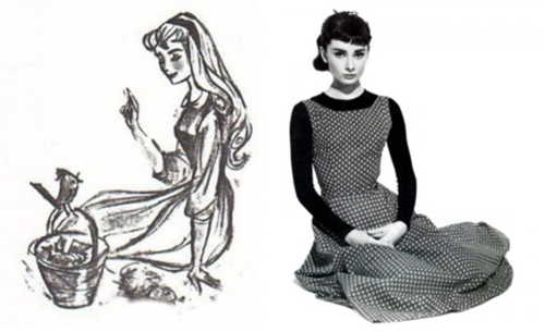 The original character design of Aurora was done by Tom Oreb, who modeled the princess after the elegant, slender features of Audrey. More info on the Audrey Hepburn Disney resemblance.